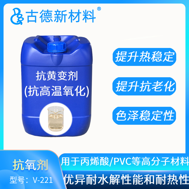 V-221是針對丙烯酸樹脂開發的抗高溫黃變劑,能有效抑制樹脂在高溫固化或烘烤過程中由于高溫熱氧引起的分子降解和黃變,提高制品在儲存,使用過程的抗老化性。V-221亦可應用于聚氯乙烯PVC等高分子材料。